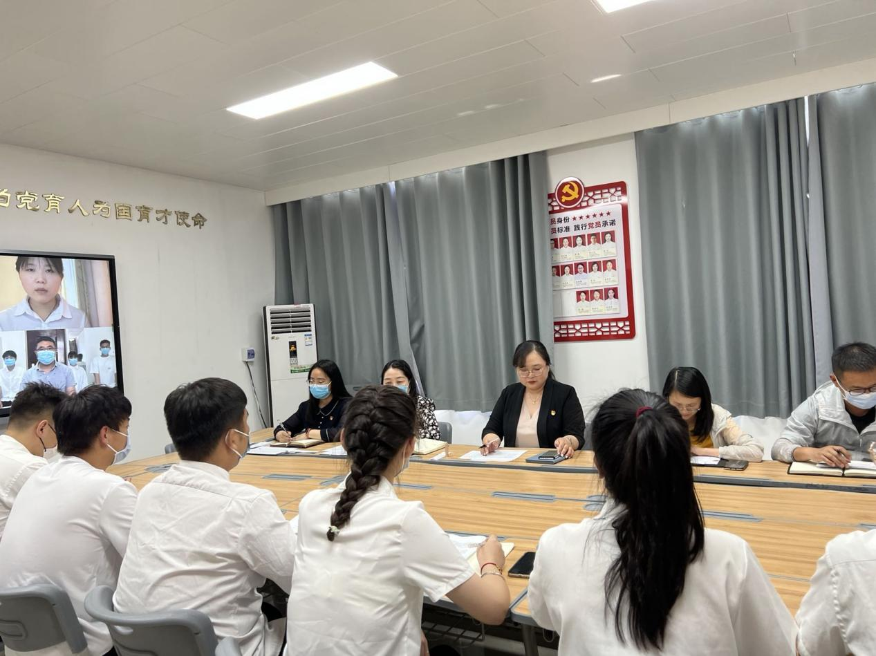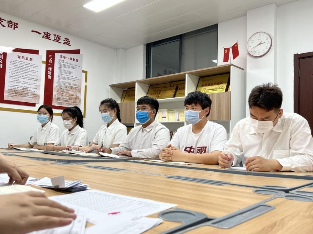 最后,李兆楠书记进行总结发言。首先,她恭喜10位同志顺利加入党组织,希望各位同志在即将到来的岗位实习中继续努力,听党话、跟党走,在岗位上发光发热、做出贡献。一要强化理论武装,关注时事热点,提升主人翁意识,做到“家事国事天下事,事事关心。”二要提高政治站位,要有大局意识,积极履行党员责任、义务,时刻以“合格党员标准”严格要求自己。三要勇于砥砺奋斗,锤炼品德修为,在党组织需要的时候,第一时间发挥先锋模范作用。