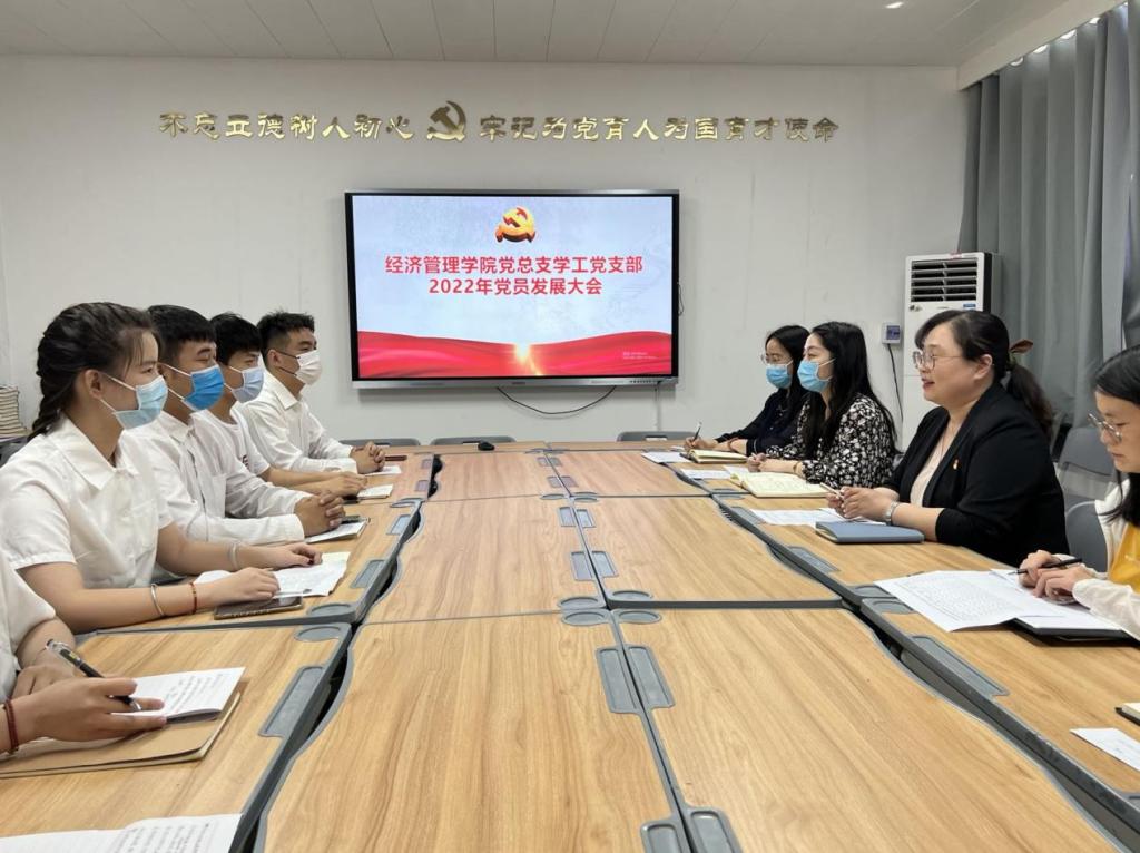 2022年5月17日下午,best365官方网站党总支学工党支部在A505召开2022年党员发展大会。会议由支部书记李兆楠主持,支部全体党员同志、10名党员发展对象参加大会。