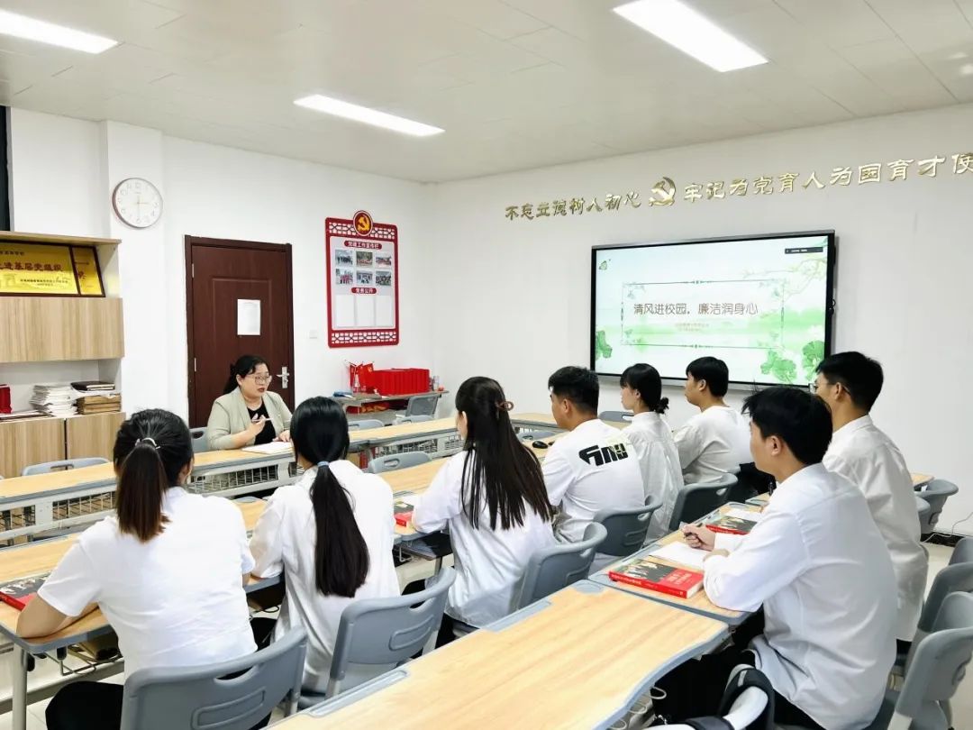 为提升毕业生党员廉洁自律意识,增强党性修养,推动主题教育入脑入心,5月17日下午,best365官方网站党总支书记李兆楠在A505为2023届毕业生党员讲授“清风进校园,廉洁润身心”专题党课。